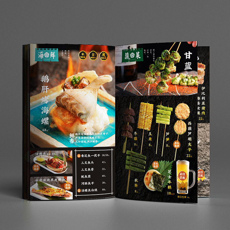 工作內容:日本料理燒鳥居酒屋菜譜規劃,日本料理菜譜編排設計,日本料理燒鳥菜品文案話術撰寫,燒鳥料理居酒屋菜譜印刷裝訂。