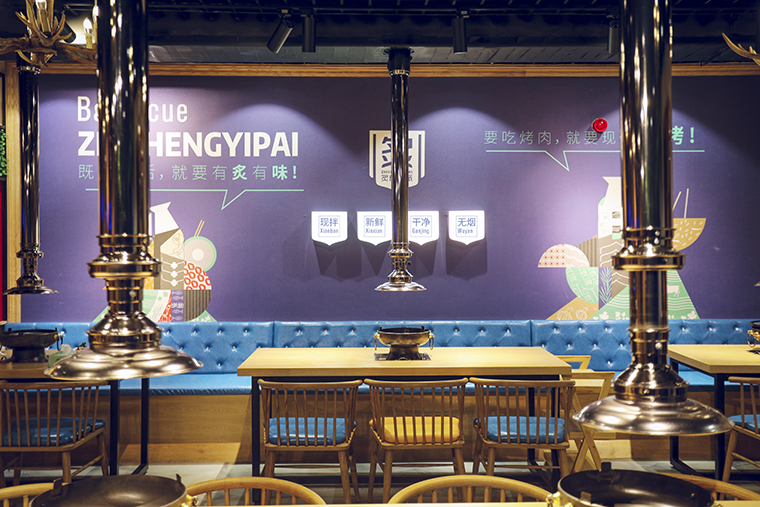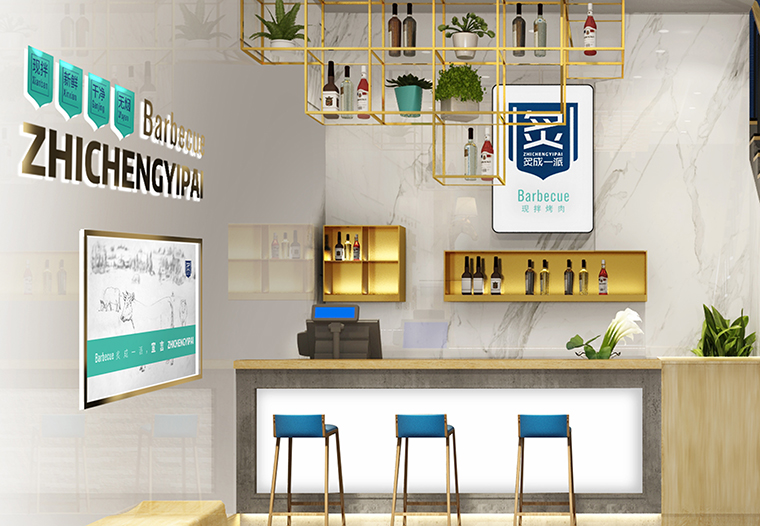 品深餐飲設計團隊通過這幾個方面的用心付出,通過品牌形象設計及主色調將品牌名及現拌烤肉,新鮮入味的核心特點傳達出來,再通過空間立體化中各種裝飾、家具、燈光、配飾、墻面主題文案等。形成了從虛的文化到實的場景,將難于描述清晰的品牌內涵處處展現在空間裝飾,品牌物料,廣告宣傳中,以一種潤物細無聲的方式將炙成一派的品牌內涵、產品賣點植入到顧客心智中,形成鮮明的品牌印象,成為消費口口相傳的??谑准椰F拌炙子烤肉店,每晚營業到凌晨4點,排隊嚴重,月均營業額突出百萬,實現優良的經濟效益。