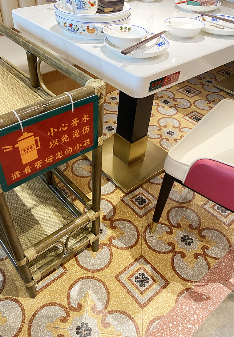 此次寶粵樓的空間軟裝陳列設(shè)計(jì),涵蓋了餐桌餐椅、收銀臺(tái)、服務(wù)臺(tái)、收納柜、沙發(fā)坐具等餐飲家具;空間吊燈及照明裝飾設(shè)計(jì);裝飾品、雕塑擺件、工藝品、畫(huà)藝軟裝以及最重要的品牌定制裝置軟裝。家具的主色調(diào)與品牌的主色調(diào)保持一致,椅子的款型也選用了廣州西關(guān)老式茶樓中的椅子;我們所使用的吊燈模仿鳥(niǎo)籠造型就是為了傳遞廣州老茶客提籠遛鳥(niǎo)飲早茶的悠閑幸福生活,和整個(gè)品牌文化高度契合;