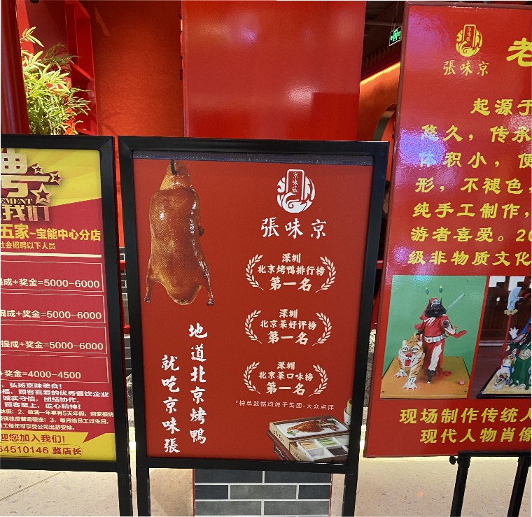 第四要素:門面中應該有發光燈箱廣告,以精致圖文并茂的形式呈現食物高精度畫面,讓顧客產生強烈的食欲;或海報展現食物的制作技法,體現食物背后的匠心,讓顧客震撼、感動。主推產品讓客人看到就想買。這個就好吃,買這個沒有錯。悅得閑廣式點心茶樓每一個店門口推的點心紅米腸就是這一做法的體現。