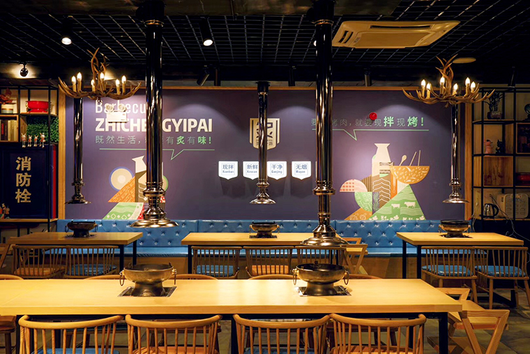 品深餐飲設計認為:炙成一派作為海口首家現(xiàn)拌烤肉店,具有明顯的市場先發(fā)優(yōu)勢,在空間中應通過氛圍體驗,品牌訴求,在消費者心目中植入現(xiàn)拌烤肉就是炙成一派,將品牌等同于品類。通過空間的視覺體驗,燈光感受,食物的味道,家具軟裝的觸感體驗,讓消費者能放松心情,享受美食,有情懷,有情調(diào),有趣味。消費者置身其中,心靈宣泄,釋放壓力,最終產(chǎn)生品牌的粘性和較高的復購率。