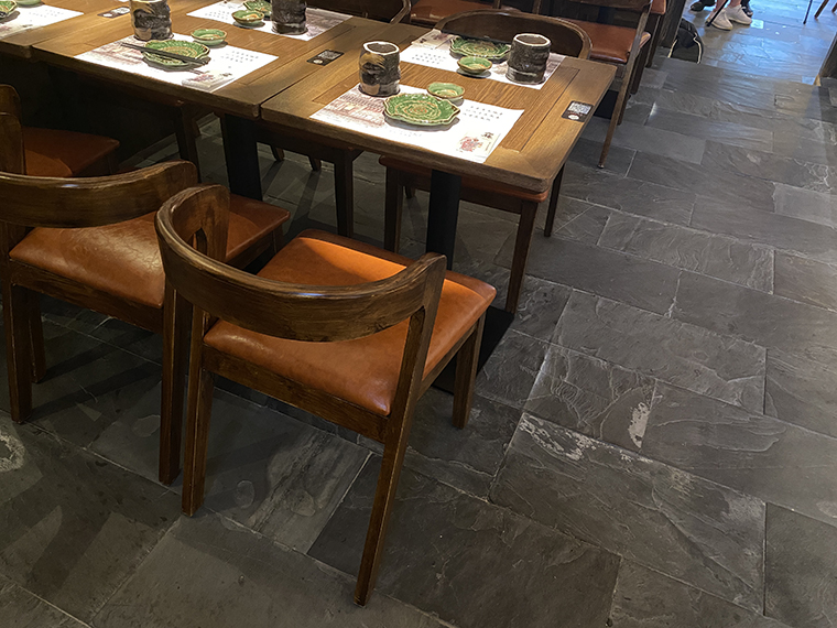 2、一樓大廳及吊頂的設計:把京都的古老街道,巷子搬到我們店里。整個大廳的頂部環繞一圈日式黑瓦頂,四周幾個日式玻璃木窗,與地面的青石瓦面,墻體的稻草漆,燒烤吧臺形成一體化的京都風格。置身其中,仿佛漫步于京都的古老美食街道中,熙熙攘攘,熱鬧非凡,抬頭間還能看見二樓的日本侍女正在推開窗戶,朝著樓下觀望。