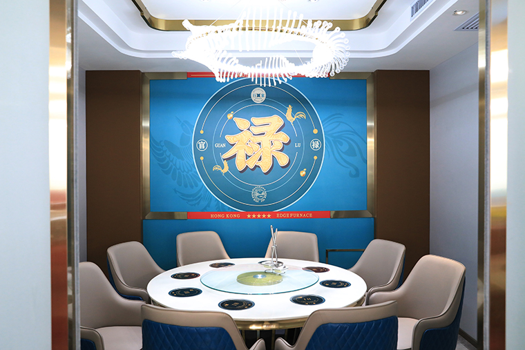 整體氛圍去掉繁雜多余的線條,多用皮質(zhì),不銹鋼材質(zhì),呈現(xiàn)精致,高品質(zhì)的用餐氛圍!空間的整體照明燈光以柔和面光為主,餐桌上方局部聚光燈照明,突出火鍋湯底的特色,金黃明亮;特色的吊燈,讓空間層次鮮明,港風(fēng)濃郁。家具以皮革為主,金屬收邊,加上小屏風(fēng)讓空間感更通透,能表達出輕奢的質(zhì)感。